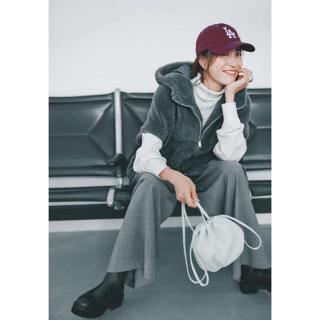 パンツ¥18,700(アダム エ ロペ)ブラウス¥22,000(ウィム ガゼット/ウィム ガゼット 玉川髙島屋S・C店)ビスチェ¥13,200(CELFORD/CELFORD ルミネ新宿2店)ハンドバッグ¥29,700(銀座かねまつ/銀座かねまつ6丁目本店)トートバッグ¥35,200※内袋付き(オルセット/オルサ)パンプス¥22,000(ユナイテッドアローズ/ユナイテッドアローズ 丸の内店)
