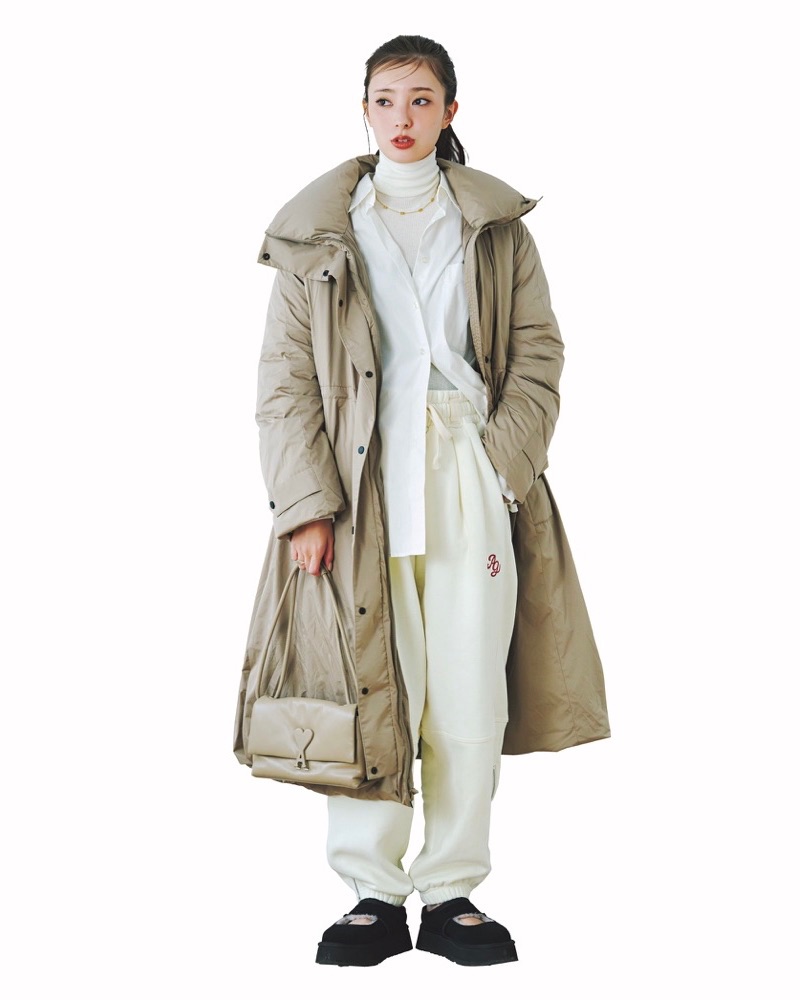 カジュアルなパンツとコーディネートをすれば、今注目の甘ニッシュスタイルの完成。