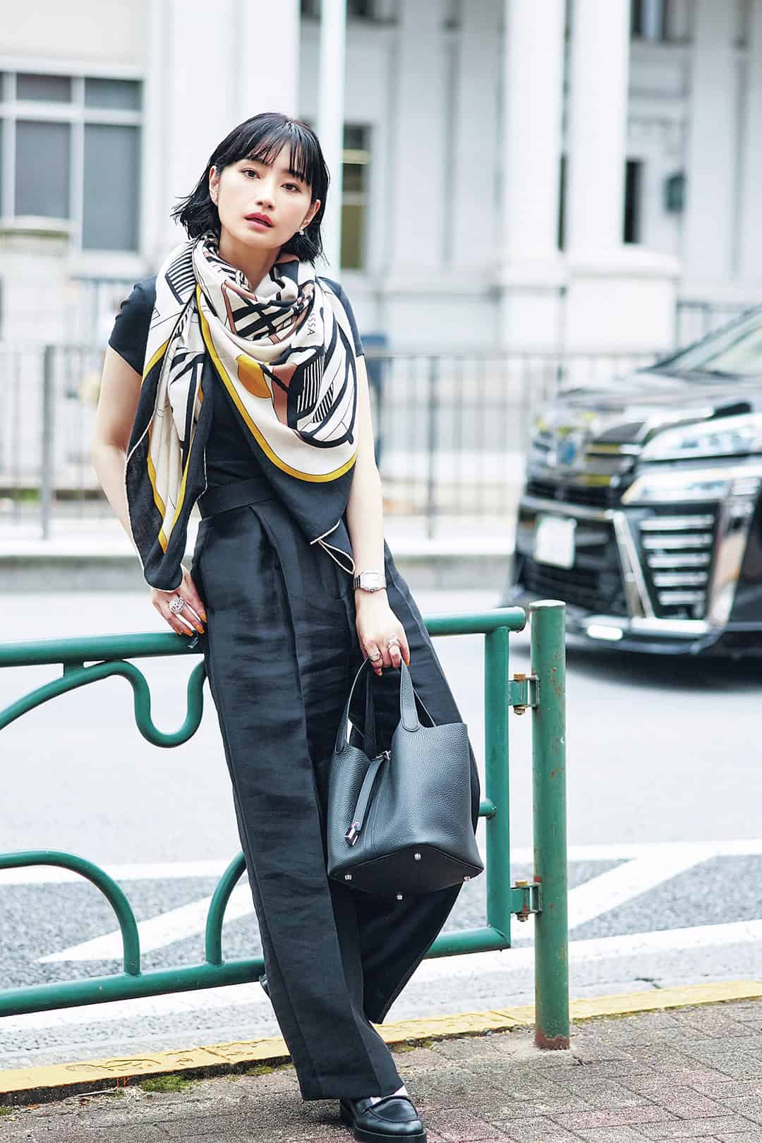 サンローラン(SAINT LAURENT)のバッグ「CELIA ミニ トート」はストラップ付きで斜め掛けもOK。「綺麗めな洗練されたフォルムが素敵。リネンのゆったりワンピースに合わせて、リゾートでも使いたい」とスタイリスト・福田美和さんも注目。