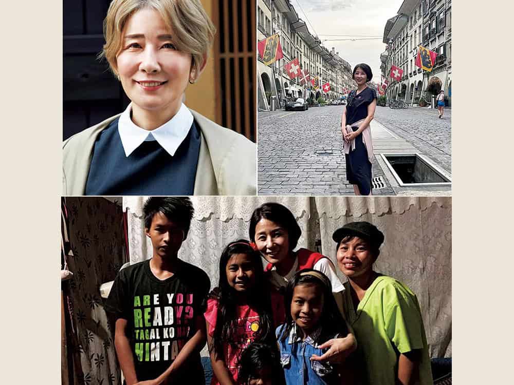 ダークグレー×黒の配色も、凹凸のあるふくれジャカードスカートでリズミカルに。スカート¥19,800(スピック&スパン/スピック&スパンルミネ有楽町店)ノースリーブニット¥8,910(アンクレイヴ スタンダード/オンワード樫山)手に持ったカーディガン¥38,500(ANAYI)バッグ¥14,850サンダル¥16,500(ともにダイアナ/ダイアナ 銀座本店)ピアス¥3,520(アクテ)ブレスレット¥13,200(クードル/MIKIRI)
