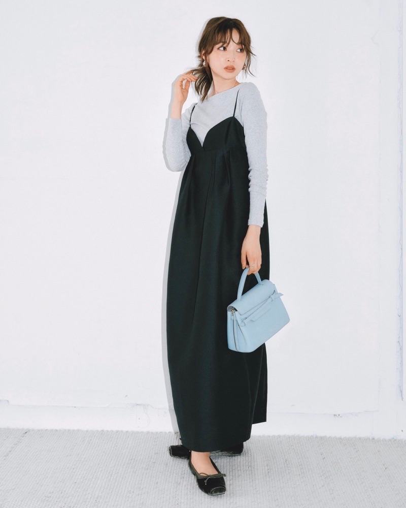 黒×黒の重ね着も