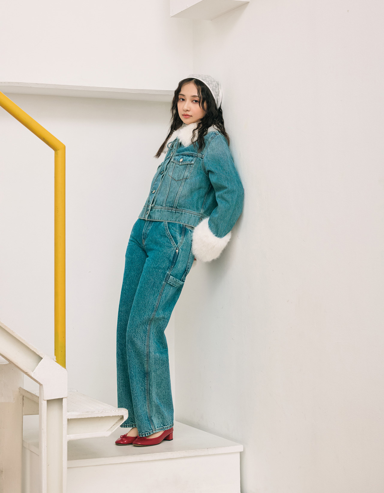 汗をかいても快適。高めの切り替え位置でぺたんこ靴でも脚長見え。サロペット¥25,300(ユナイテッドアローズ/ユナイテッドアローズ渋谷スクランブルスクエア店)