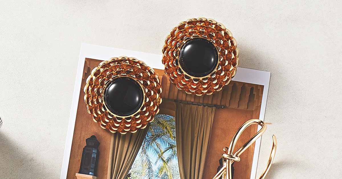 マットなブラックにゴールドのブランドロゴが映えるパッチンピン。ビッグサイズなので、一つつけるだけで無造作なアップもよそ行きヘアに昇格。