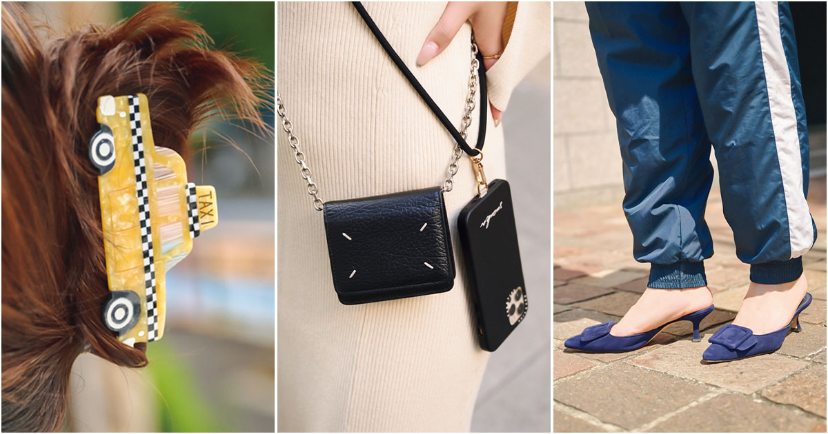 小物は女らしいものをチョイスして自分らしさをプラスしています。