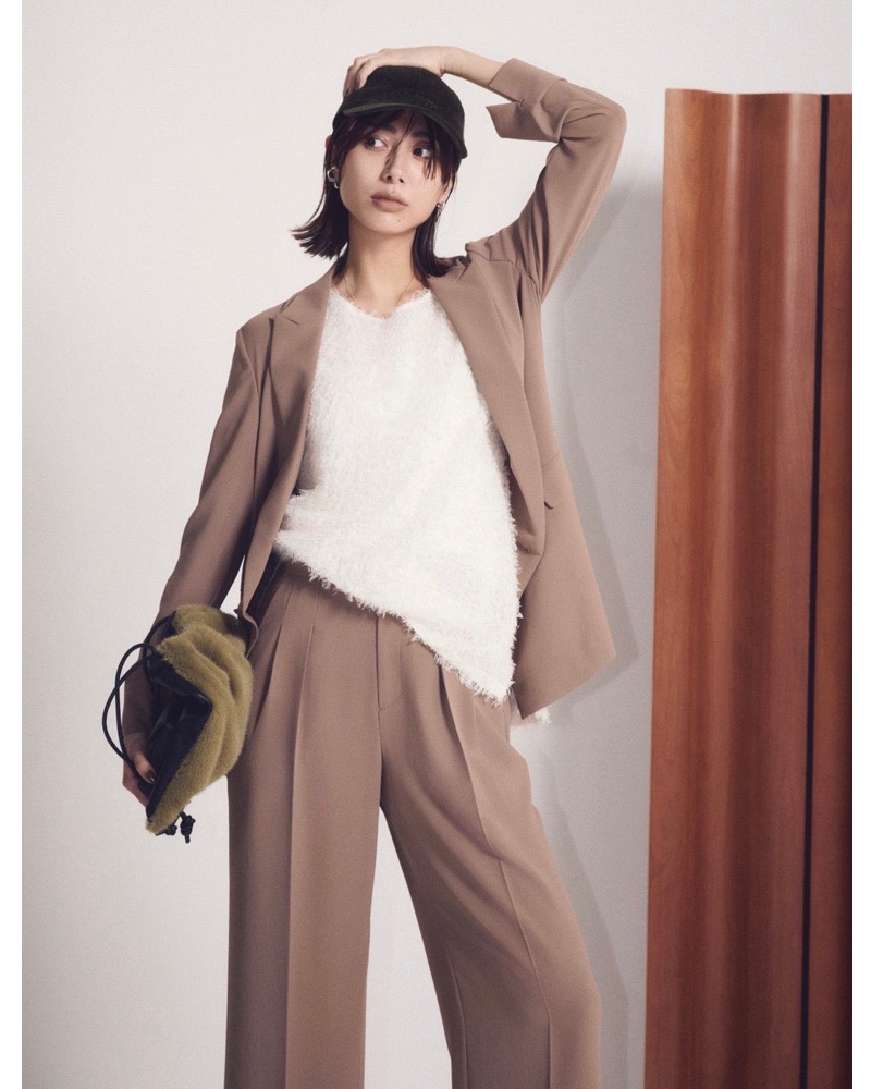 Tシャツ¥9,680(スローン/ザ ショップ スローン 新静岡セノバ店)ニットエプロン¥8,800(ホームランド/タイムレスコンフォート自由が丘店)ピアス¥16,060(バルブス/ZUTTOHOLIC)
