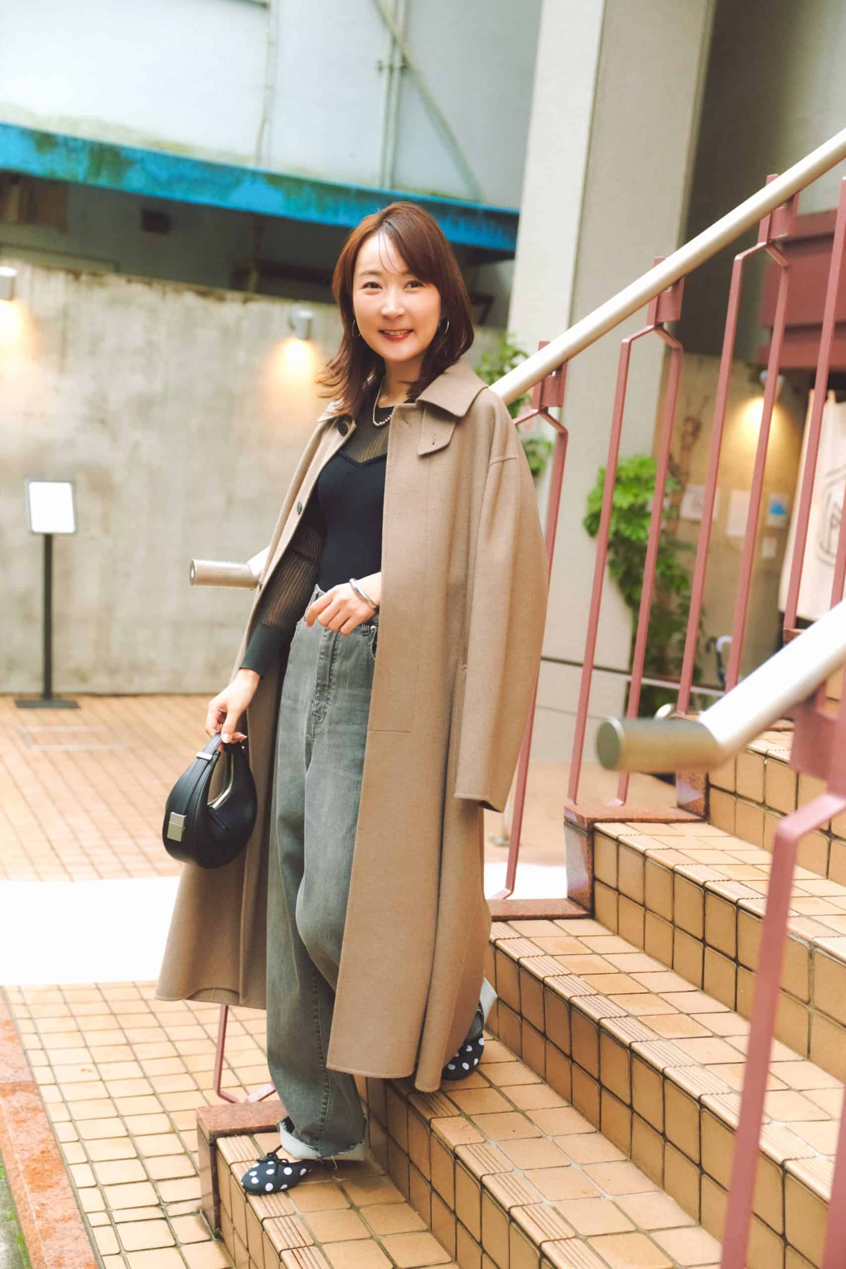 「新たに買い足したユニクロのデニムはとにかく軽くて柔らかく、穿いていることを忘れるほど。ストレッチもしっかり効いているので、公園に行くときや送迎時にも大活躍。普段は汚れを気にして躊躇しがちな淡色デニムですが、3000円台と超お手頃価格なら子どもとアクティブに過ごす日もストレスなく着用できます。もう一つの推しポイントは、こだわり抜かれたストレートシルエット。ほどよくゆとりがあるぶん、脚のラインをあまり拾わず、すらっとまっすぐな美脚に見せてくれるんです。今っぽくずるっと穿きたくて、オンライン限定の丈長めタイプを選びました」