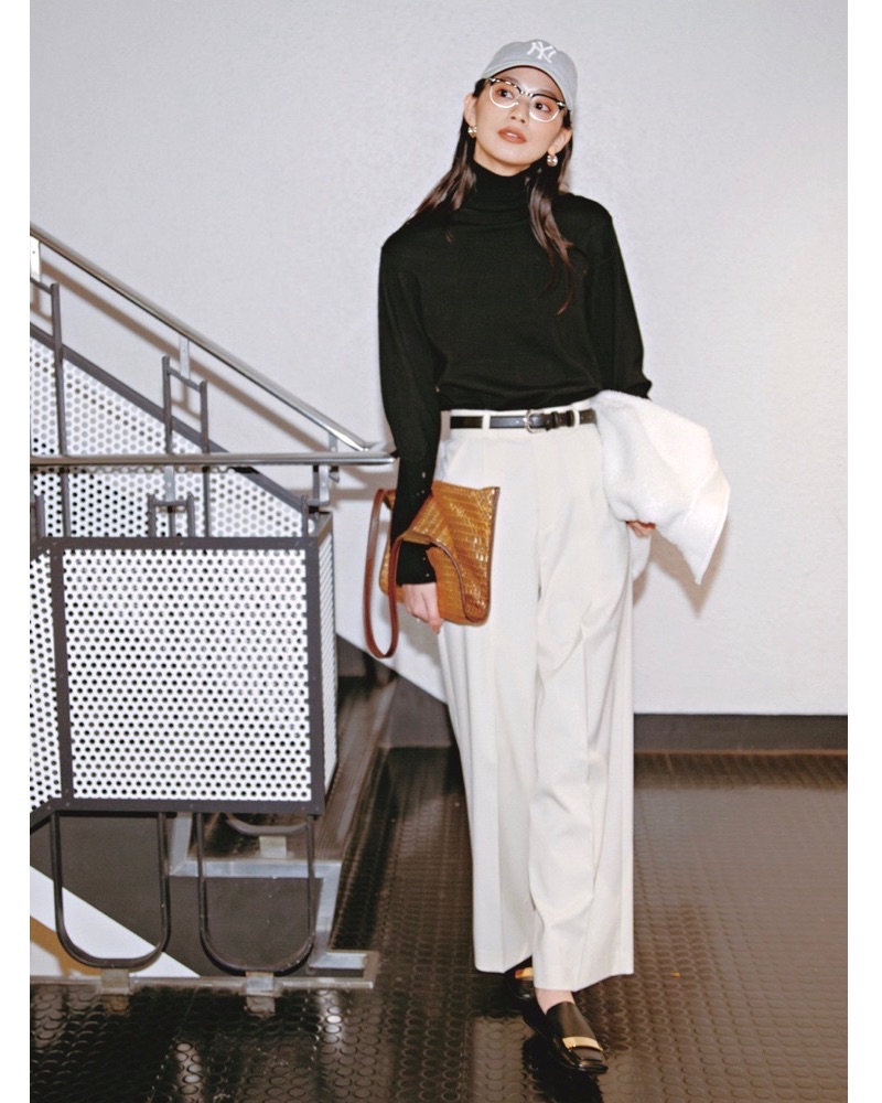ケーブルVネックセーター¥3,990 2WAYタックストレートパンツ¥4,990
