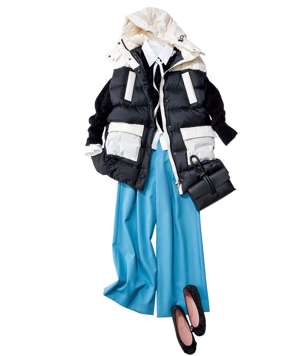 難しそうで実は万能なメタリックブーツは、スカートにもパンツにもどんな素材のボトムスにも馴染みます。それでいてコーデが単調にならずにメリハリが出て、今っぽく更新してくれます。新鮮さを効かせた足元と華やかなスカートで友達との夜のお出かけにも一層気分がアガります。