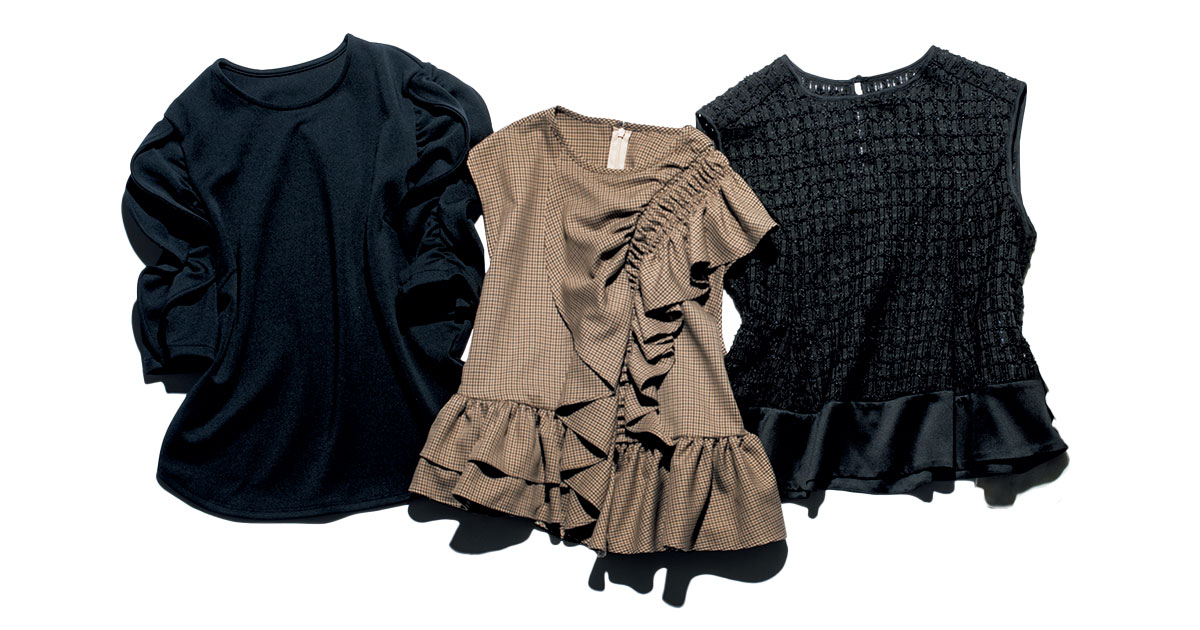 ブラウス¥28,600(カデュネ/カデュネ プレスルーム)デニムパンツ¥25,300(レッドカードトーキョー/ゲストリスト)イヤリング¥2,860(mimi33/サンポークリエイト)