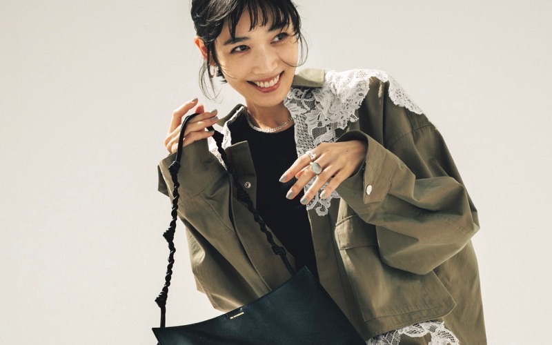ストール¥27,500(デミルクス ビームス/デミルクス ビームス 新宿)ネックレス¥23,100(マリハ)ピアス¥23,100(バルブス/ZUTTOHOLIC)スニーカー¥6,380(コンバースインフォメーションセンター)バッグ¥7,260(ル タロン/ル タロン 有楽町マルイ店)