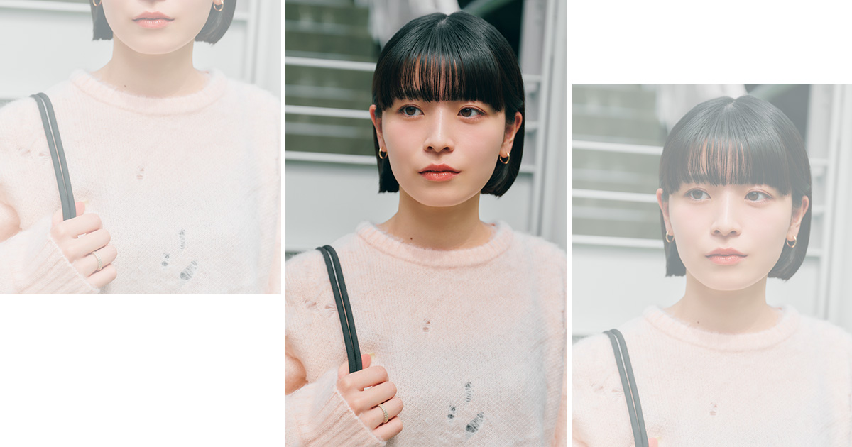 <蛯原さん>プルオーバー¥17,600(ニアー ニッポン/ニアー)コンビネゾン¥49,500(ティーチ)ピアス¥86,900(ソフィー ブハイ/エスケーパーズ アナザーワールド)リング¥88,000(トーカティブ/トーカティブ 表参道)プロフール写真:カーディガン¥41,800ニット¥28,600(ともにオブリオ)