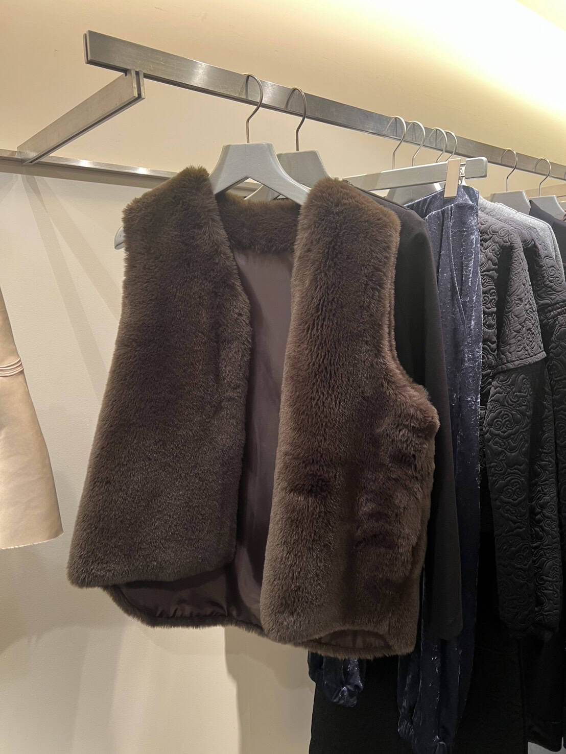 今年大注目!トレンドカラーのブラウンに惹かれました。エコファーと思えない高見えする質感と素材も魅力的です。秋が深まったらGジャンやトレンチコートの上に、冬はコートに忍ばせても可愛い!ボトムスも選ばないショート丈で、パンツやスカートにも合わせやすそうな万能さも気に入りました。