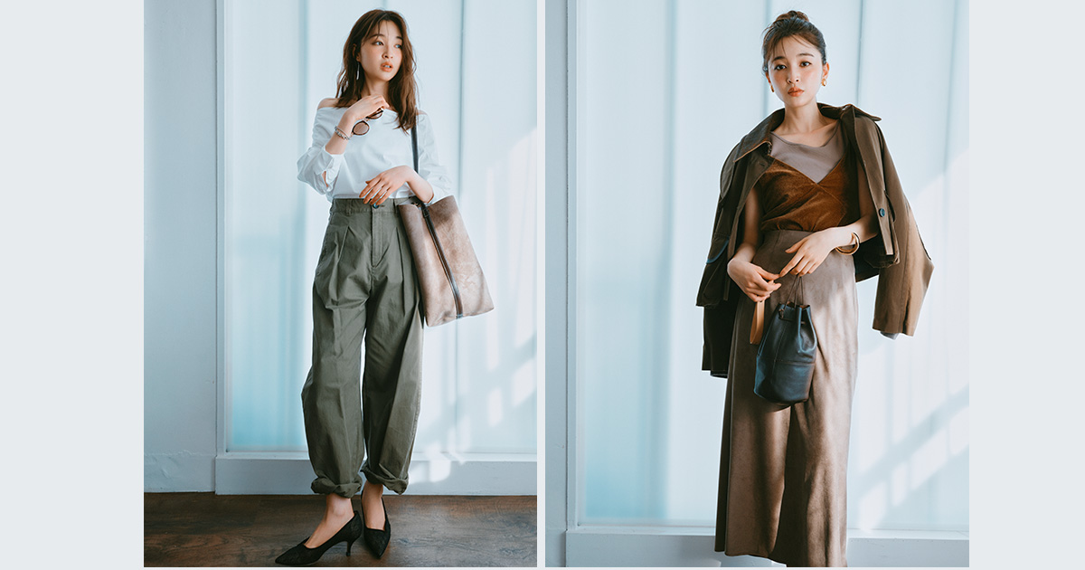 自立した大人の秋の夜の外出は上質な抜け感がサマになる。歩幅を合わせるたびにほんのり影が重なり心が寄り添う。それぞれ違うのにどこか似てしまう二人。世界で一番優しい一致をセットアップやジャケットで。