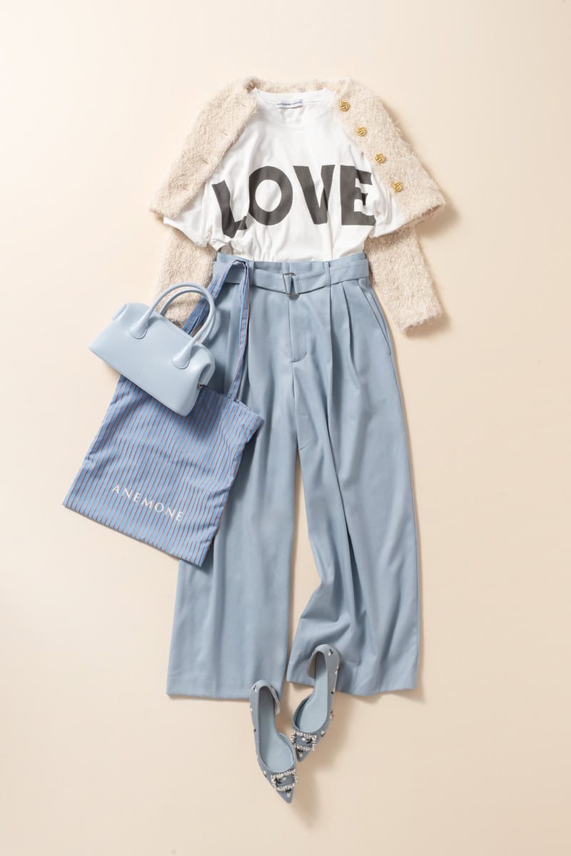 推しのメンバーカラーを纏って推し活を楽しむアクティブな1日は日差しや冷房、朝晩の冷え込みにも抜群の対応力を誇るジャケットカーディガンがマッチ! オフホワイト×ライトブルーのコントラストが品よく映えるから、急な写真撮影でも自信が持てそう。オフホワイトのジャケットカーディガンはどんなカラーとも相性抜群かつ洗練された印象へと導いてくれるので重宝します。