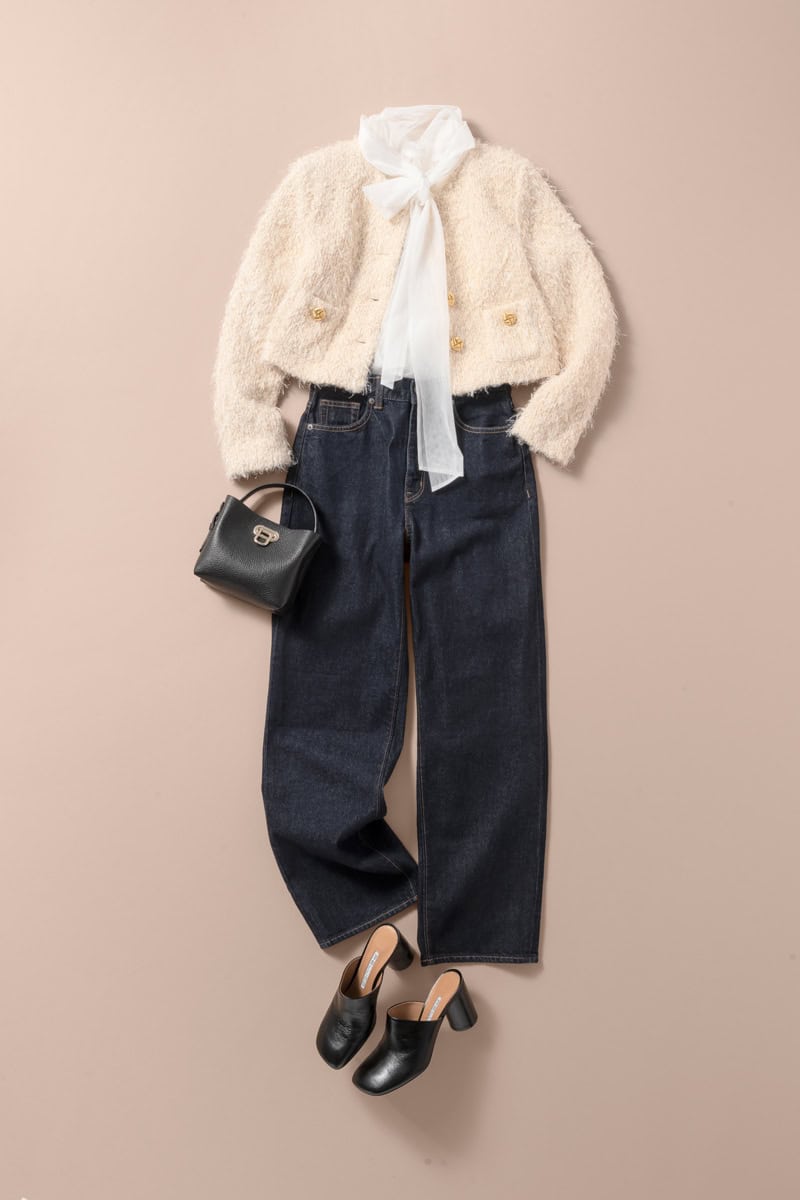 カジュアルさとエレガントさが程よく調和したデニムスタイルでこなれ感を