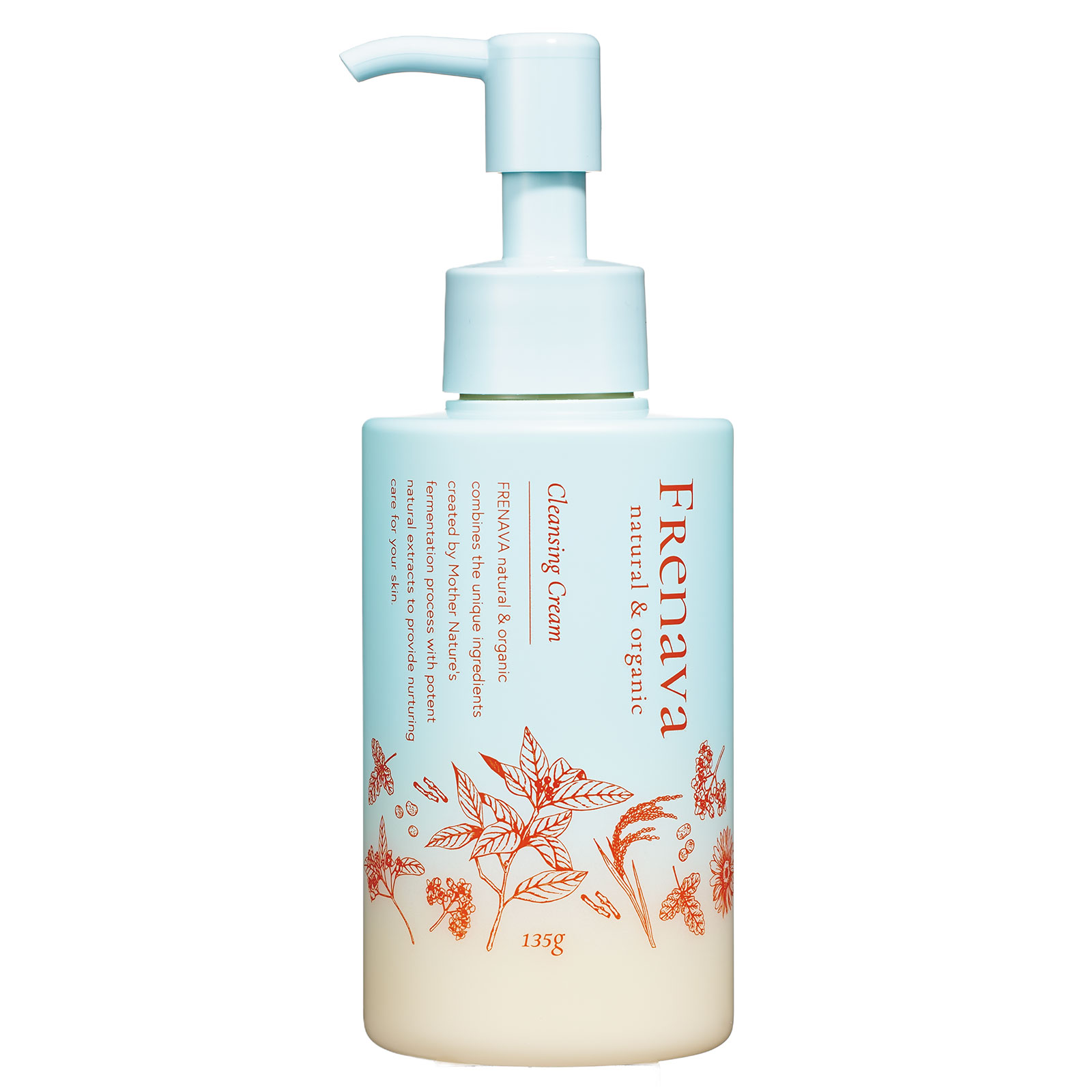 「日本の自然が秘める無限の価値を存分に生かしたスキンケアの代表格。与える乳液かのように滑らかで濃密、それでいてみずみずしいテクスチャーは、夜、クレンジングとして、朝は洗顔としても使えて、使うほどに、肌が柔らかくなるよう」。FRENAVA natural & organic クレンジングクリーム 135g ¥4,180(福光屋)