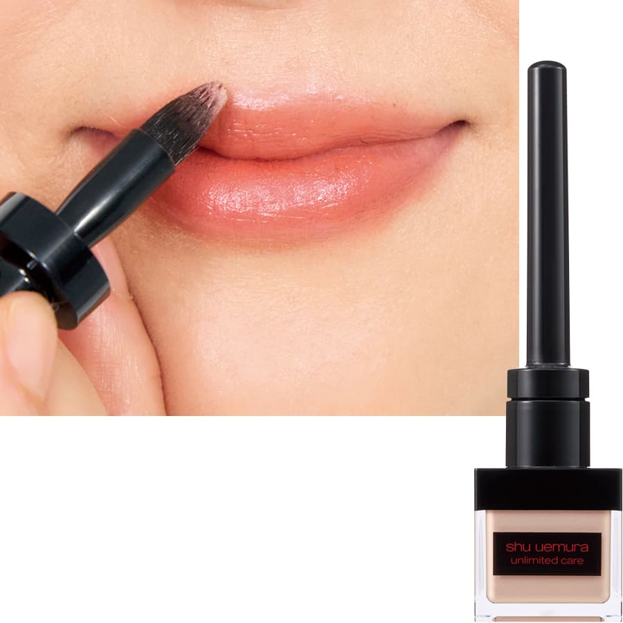 リップクリームで保湿し、軽くティッシュオフした唇に、コンシーラーをアウトラインから内側へ指の腹でトントンと馴染ませます。唇のラインと色ムラを補整。厚塗りすると不自然になるので、ごく少量を範囲を広げすぎずに。SHISEIDO シンクロスキン ラディアントリフティング コンシーラー 202 ¥4,400※編集部調べ(SHISEIDO)