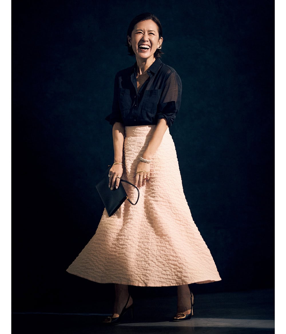 40代になると体の輪郭、肉質、髪、あらゆるところに変化が現れます。それに寄り添うように似合う服の素材や形が変わっていくのは当然のこと。50代になるとだいぶラクになるけど、40代は迷いが出てきて、新たな自分探しが続いていく時期。若い頃に着ていた服が似合わなくなっていくことに執着して嘆くのではなく、今、似合うようになってきたものに目を向けるべきだと思います。