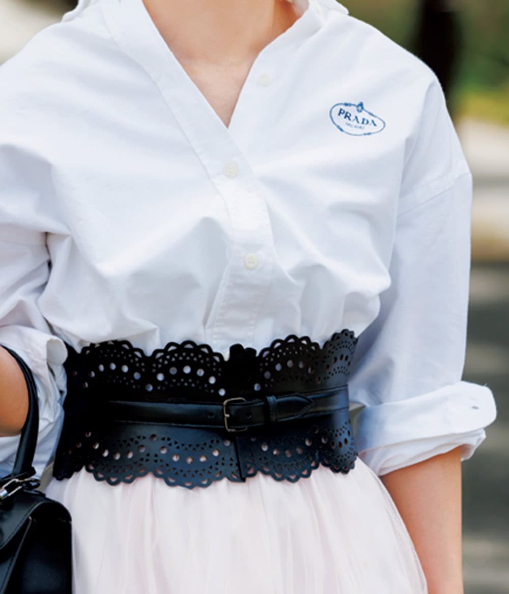白シャツのマンネリ化を防ぐ、ウエストマークのアイディア〈6コーデ〉
