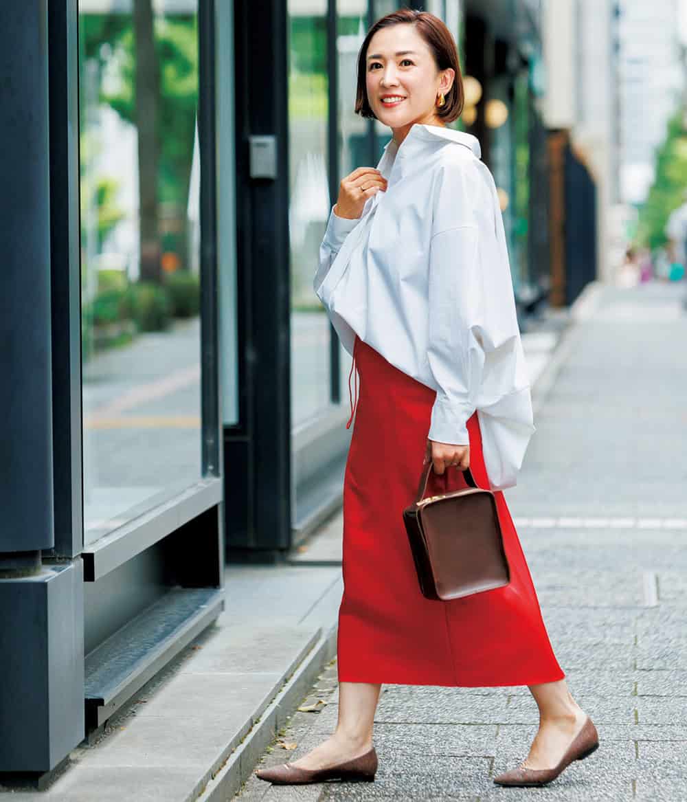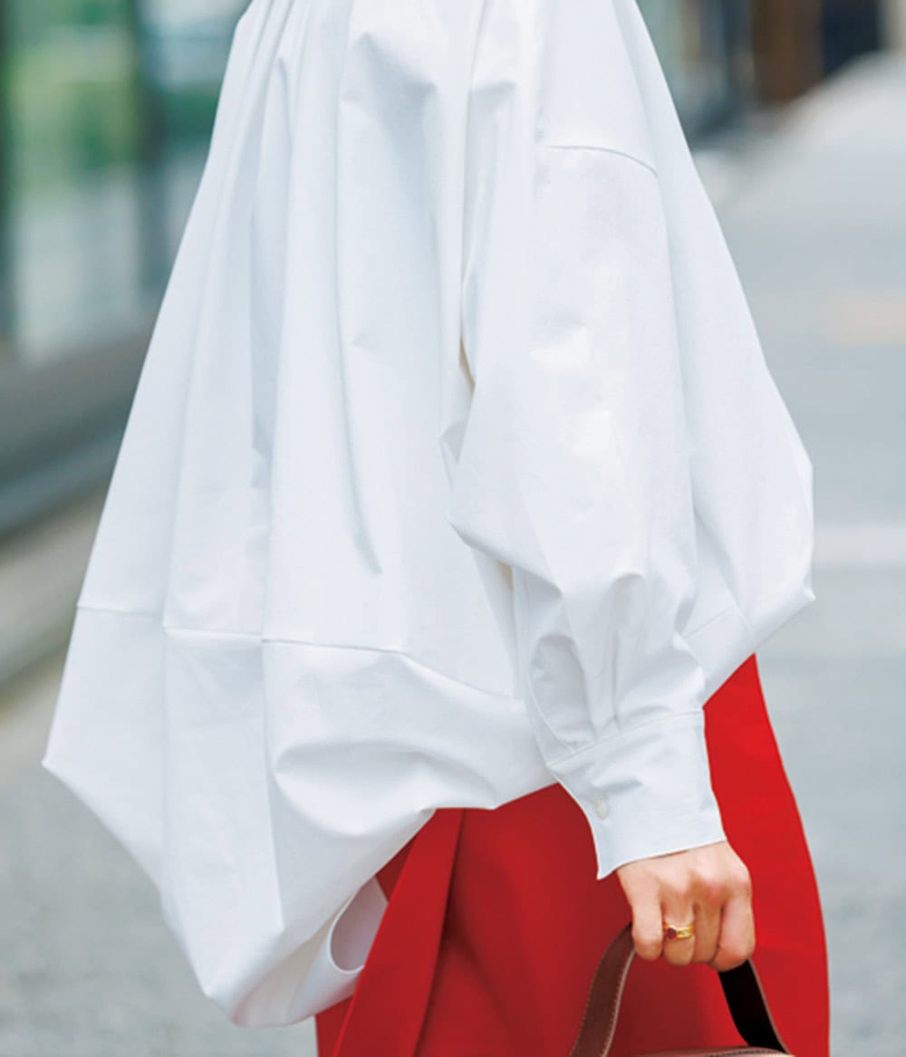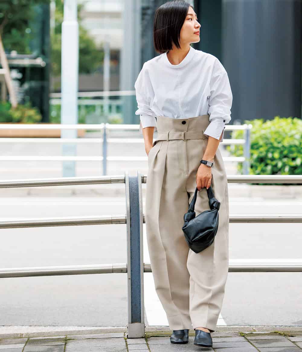 関西・名古屋読者の間で【白シャツ】の支持率が急上昇。今回は<ウエストマーク>を活かした読者のコーデをご紹介します。