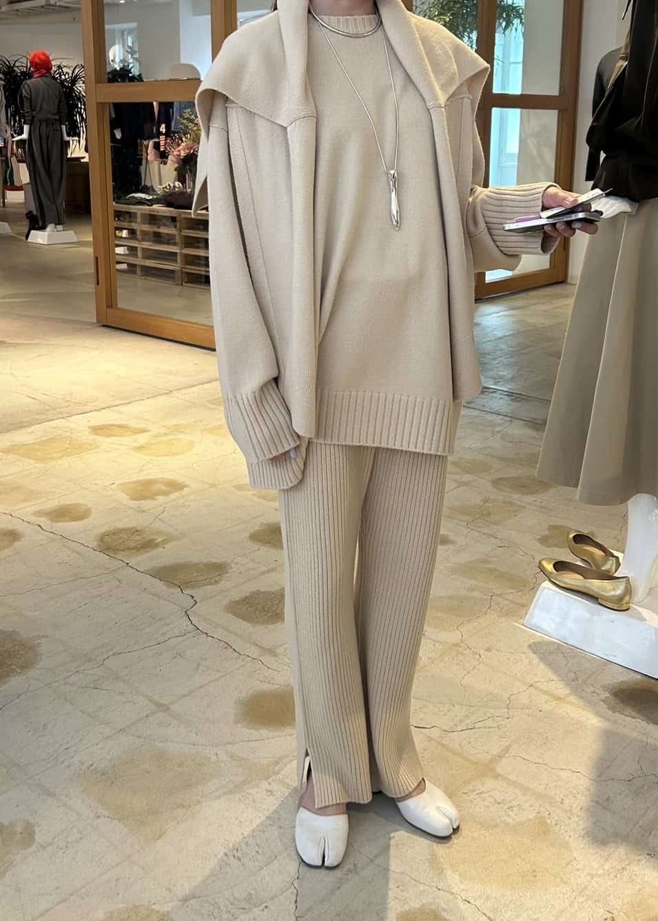 ニットのセットアップは大好きですがArpege storyのニットは高級感のある素材でシルエットが綺麗でした。試着してみたら、とても高見えで感動!即購入決定でした。カジュアルにまとめて気取らなくていいご近所ランチや、メンテナンスDayにもストレスフリーで大活躍しそうです。