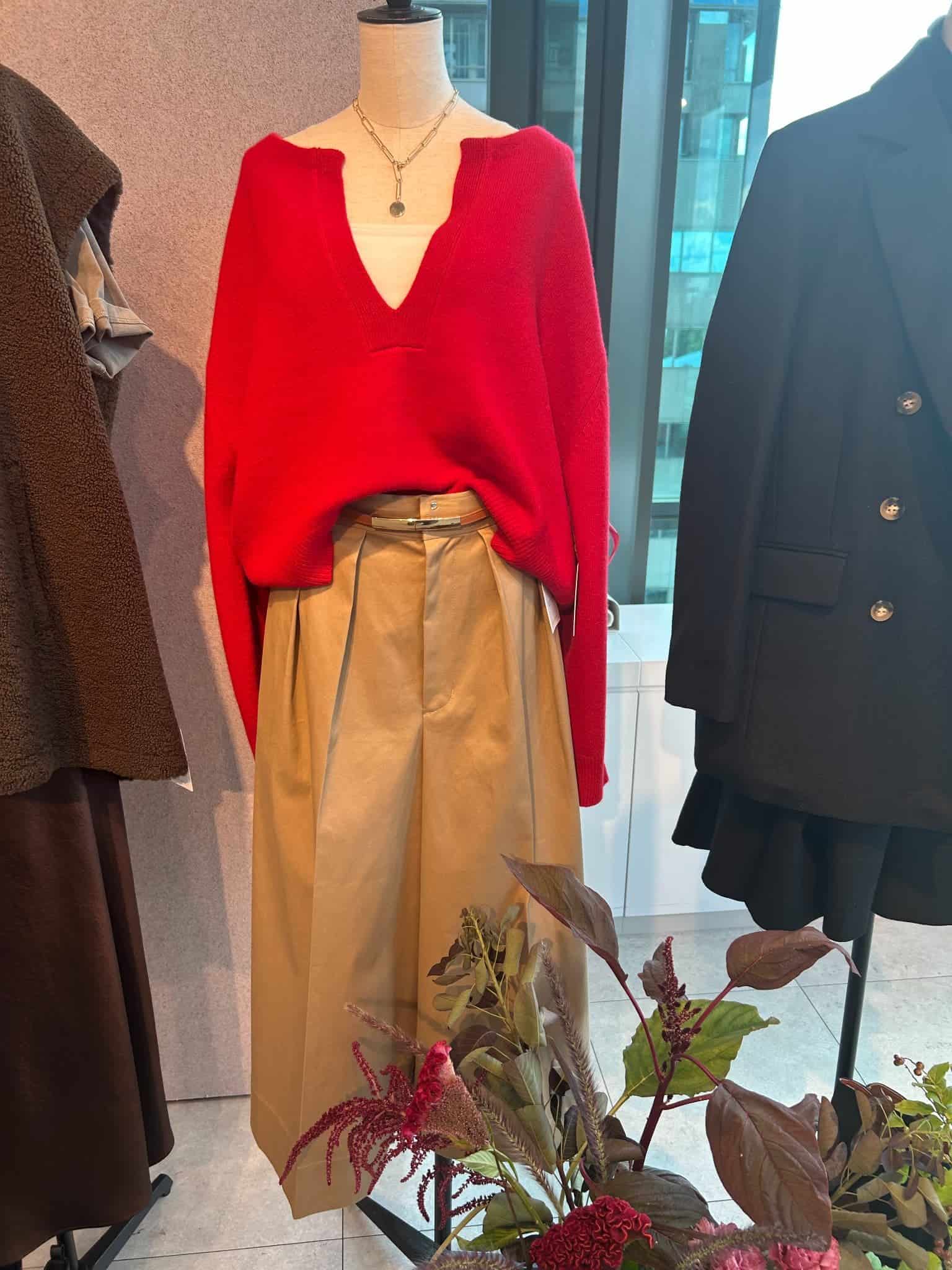 今季大注目の赤ニット。中でもCADUNEで見つけた赤ニットは、大人のくすみ肌もキレイに見せてくれそうな鮮やかな色。合わせてるベージュの組み合わせも素敵で、この秋に絶対に取り入れたいと思った大好きなスタイルです。コーデが暗くなりがちな秋冬だからこそ、明るい色を着て季節を楽しみたいです。