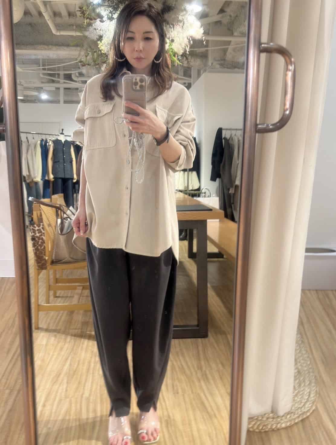 デニムシャツだけど大人でも着やすいベージュカラーに一目惚れ!ヴィンテージ感のあるベージュカラーでカジュアルになり過ぎず、着ていく場所やコーデも選ばず合わせやすそうです。程良いオーバーサイズ感なのでサッと羽織るだけでこなれた印象に。秋や春は特に重宝しそうです。