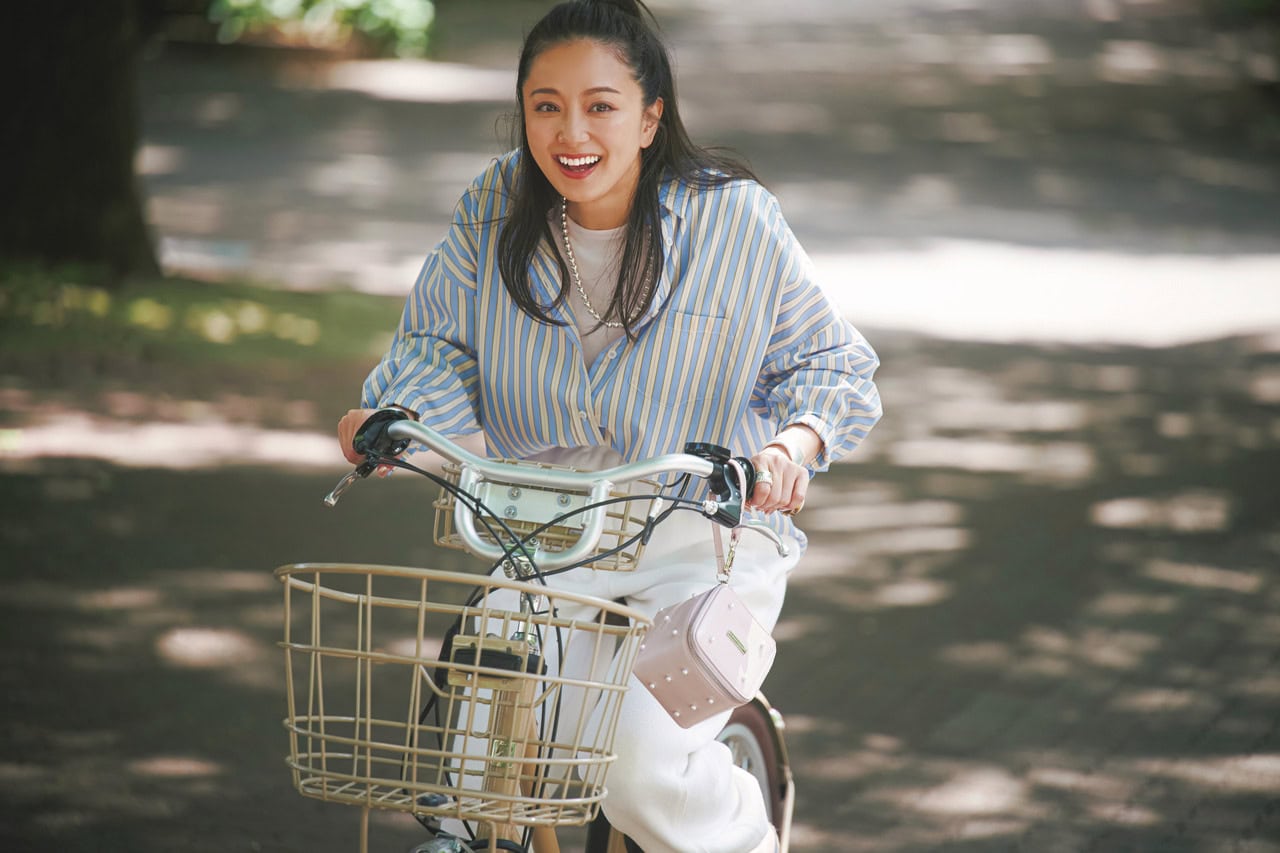 ビッグシャツは、サラッと羽織れるサイズ感がほんのり汗をかきがちな秋にピッタリ!甘トップスの存在をしっかりと残しつつ、エネルギッシュなストライプ柄で、コーデに高揚感を高めます。秋は、カラー×デザイン重視でキュートに仕上げたい。