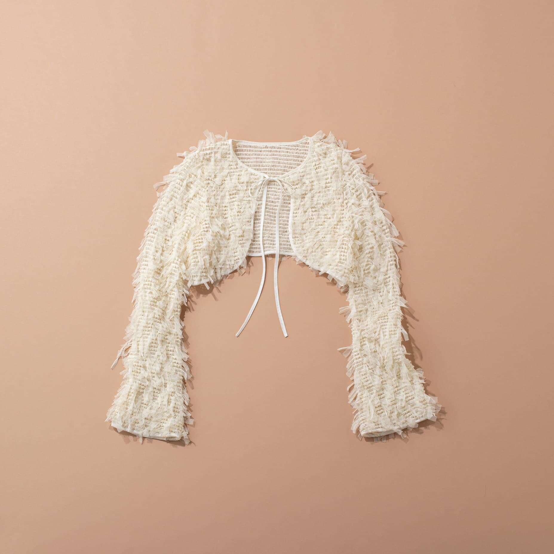 さらっと羽織るだけで旬顔になれる一枚。素材の表情で甘さと華やかさをプラスできるから、シンプルコーデの日も頼れる存在です。素材レイヤードを楽しみつつ、着回し力も抜群なので、もと取れ確実のイチオシイテムです。