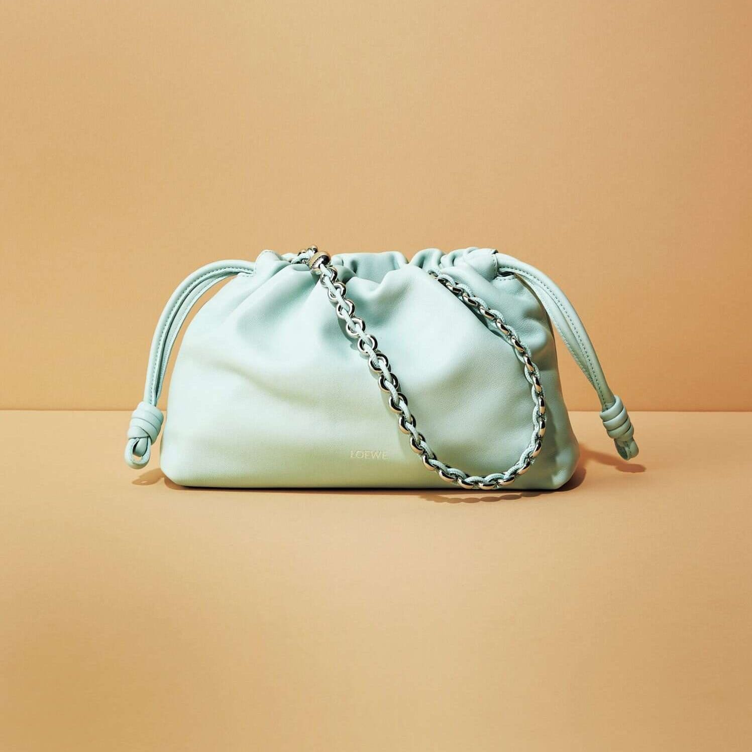 ミントグリーンとシルバーの配色が爽やか。バッグ「フラメンコパース」〈H20×W30×D10.5cm、ストラップ付き〉¥541,200(ロエベ/ロエベ ジャパン クライアントサービス)