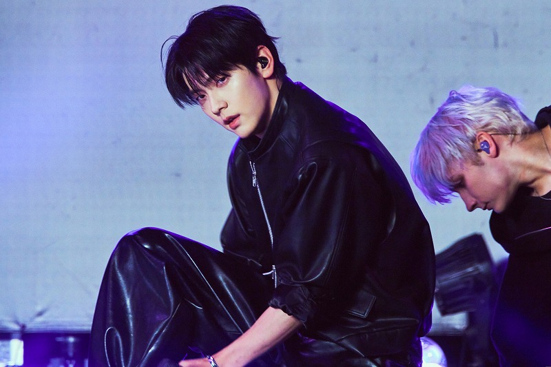 ブラックのフーディーやシャツ、レザージャケットにレザーのパンツを合わせたクールに大人っぽさを感じる全身ブラックのコーディネート姿にMOAたちはハートを撃ち抜かれていました。