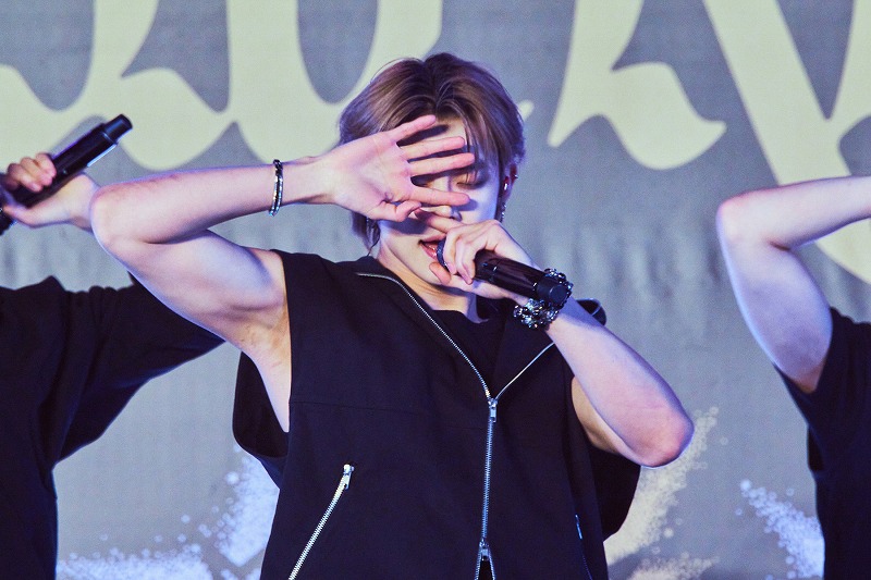 HUENINGKAI まずは今日来て下さって本当にありがとうございます。今日3rdアルバムがリリースされました。これからがスタートです。これからの僕たちの行く先もしっかりと見守ってほしいと思います。頑張ります。「ありがとうございます(日本語)」と、ガッツポーズ。