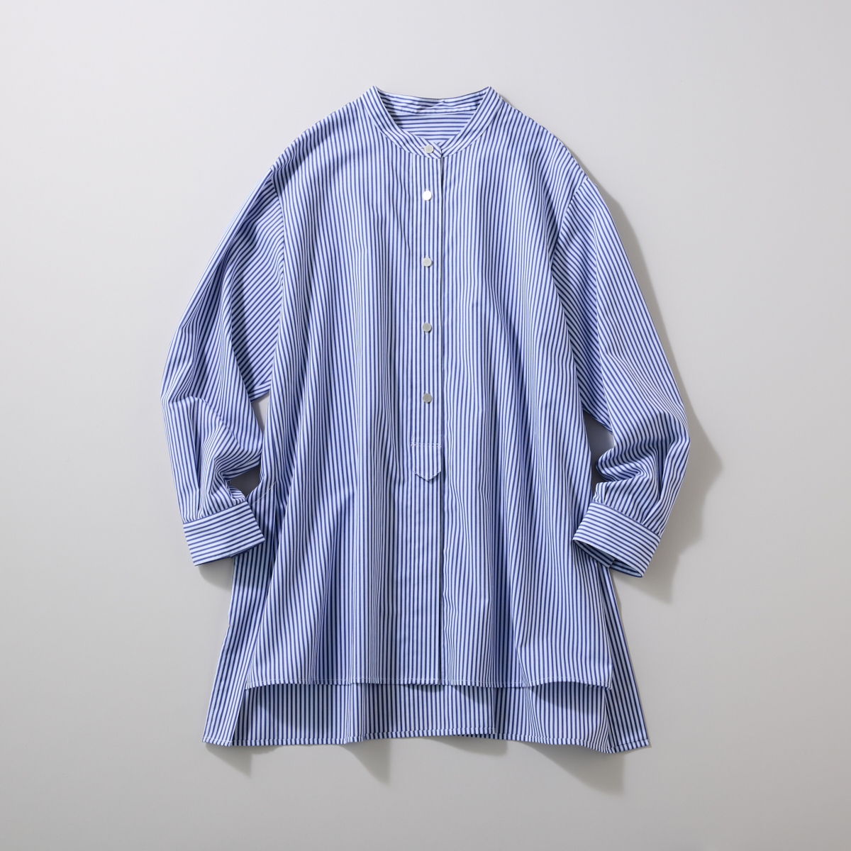 かっちりしすぎない抜け感のあるシルエットを追求した、ブランドの定番シャツ。衿抜きしやすいデザインで、ヘルシーでエレガントな着こなしが簡単に手に入ります。国内生産の綿を100%使用し、柔らかで快適な着心地に。こだわりの製法により洗濯後もシワが気になりにくく、アイロンの手間を軽減できる一枚です。