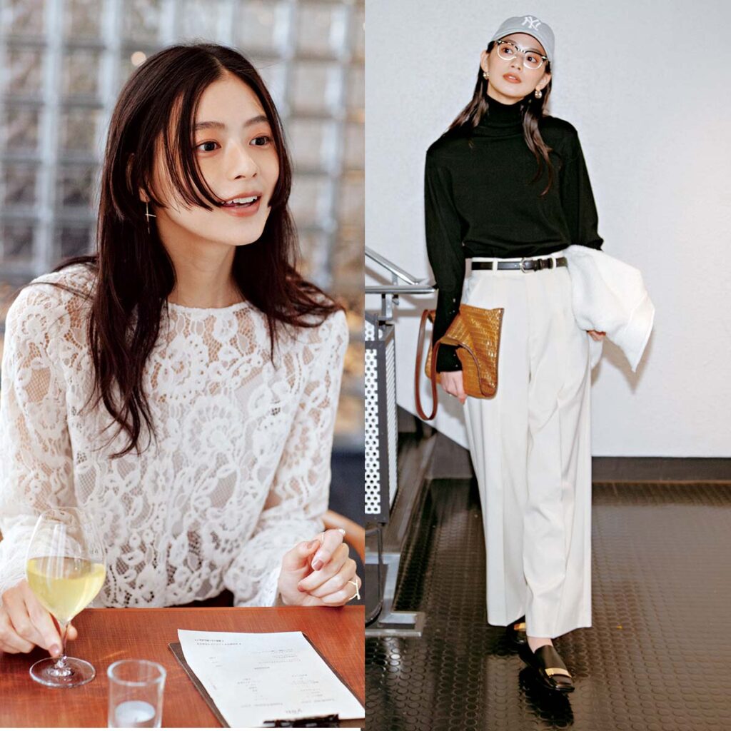 レーストップス¥23,100(バッカ╱トゥモローランド)タンクトップ¥11,000(アワワコール╱ワコールお客様センター)パンツ¥36,300(ロエフ╱エイチ ビューティー&ユース)ピアス¥22,000リング¥14,300(ともにワンエーアールバイウノアエレ╱ウノアエレ ジャパン)ネックレス¥9,900(アビステ)時計¥810,700(ロンジン╱ロンジン カスタマーサービス東京)ベルト¥14,300(レフィエ╱フラッパーズ)バッグ¥1,106,600(デルヴォー)パンプス¥130,900(セルジオ ロッシ╱セルジオ ロッシ ジャパン カスタマーサービス)