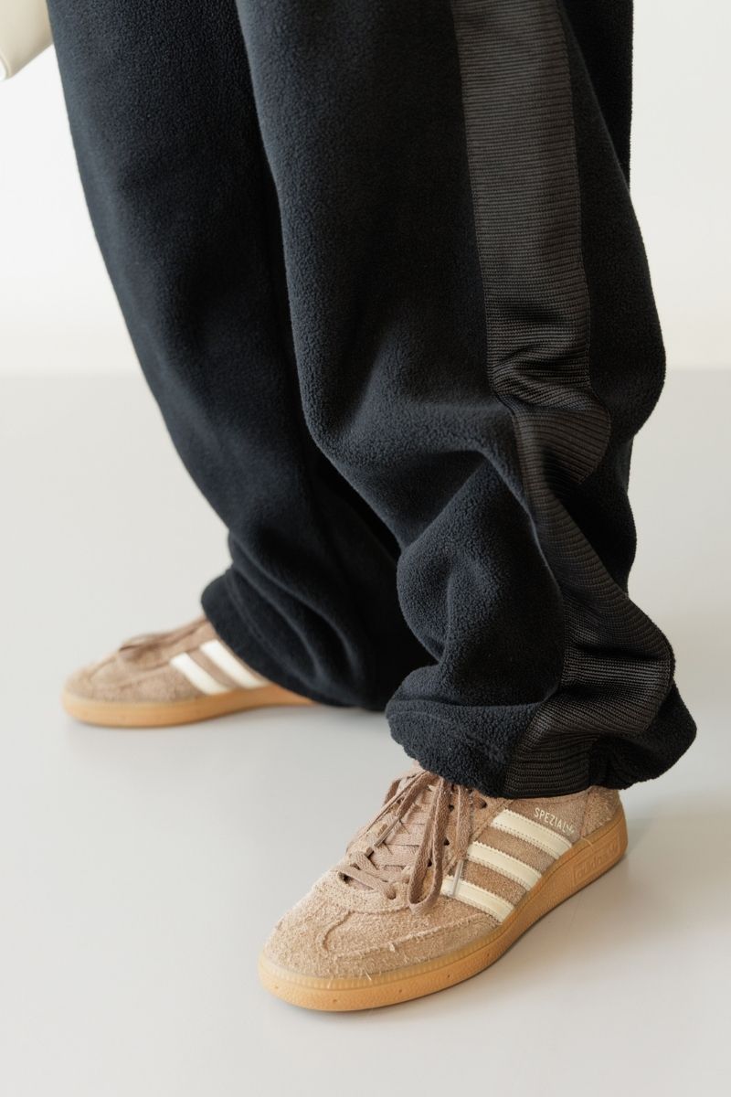 真冬の公園やスキー旅行に重宝しそうなフリース素材のパンツ。サイドに配された光沢のあるテープがスッキリした印象を与えてくれるので、コンサバママもトライしやすそう。ウエストは紐仕様だから、自分サイズに調整可能。あえて大きめを選んで“ゆるずる”感を楽しむのもイマドキです。ジャケット同様に裾にドローコード付き。らくちんな穿き心地で温かく、家の中でもずっと穿いていたくなるパンツです。