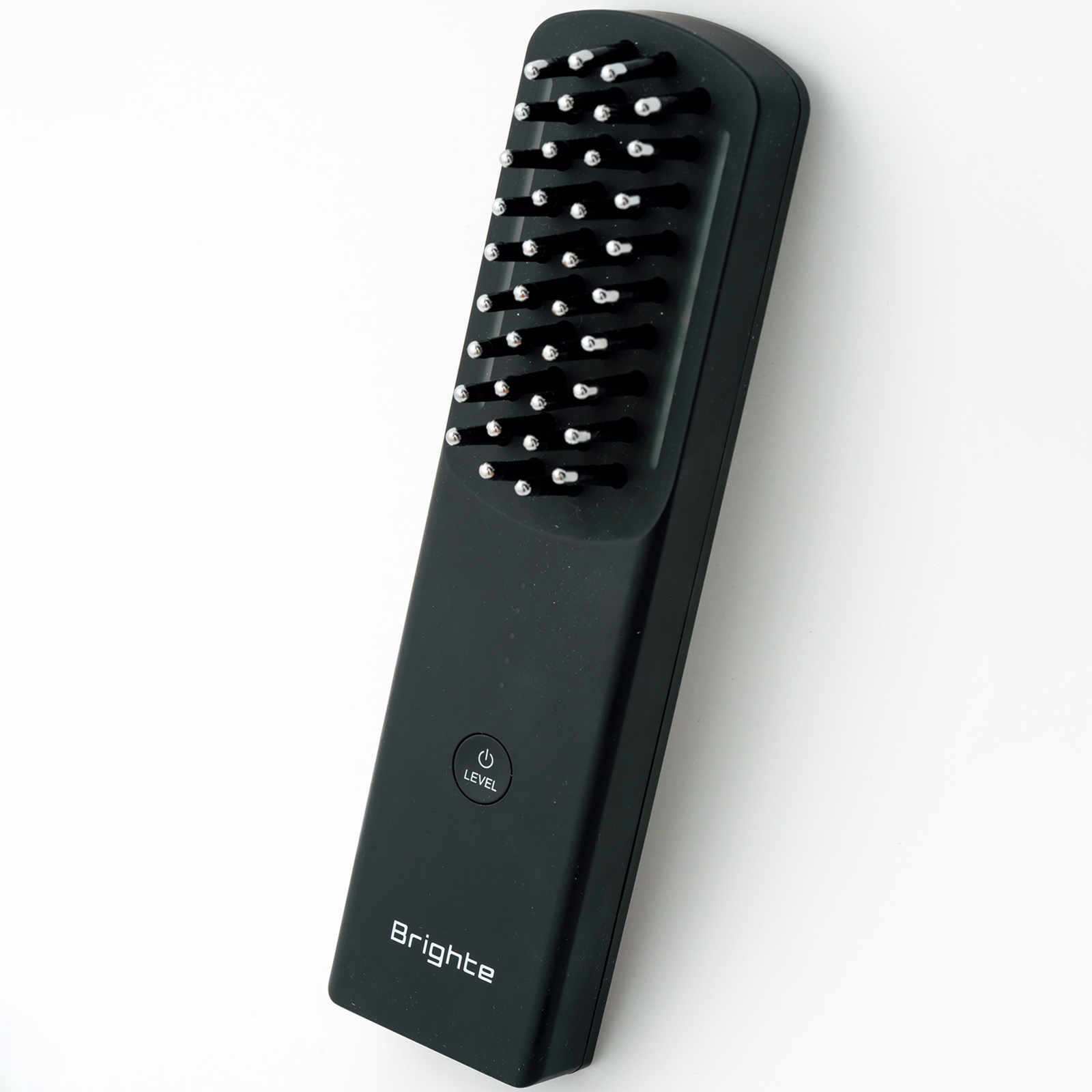 Brighteの ELEKI BRUSHは頭皮をマッサージしてコリやむくみを取ったり、首の付け根から下になでてリンパを流したりしています。