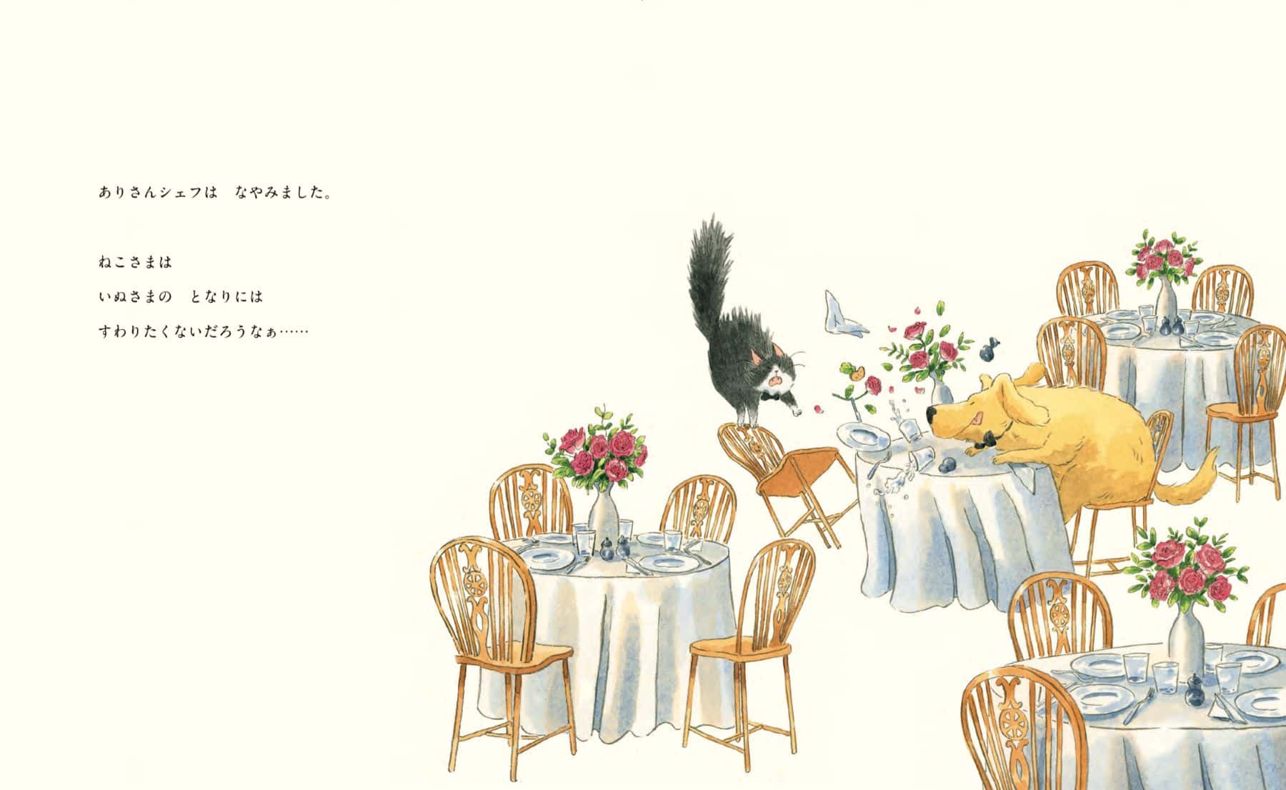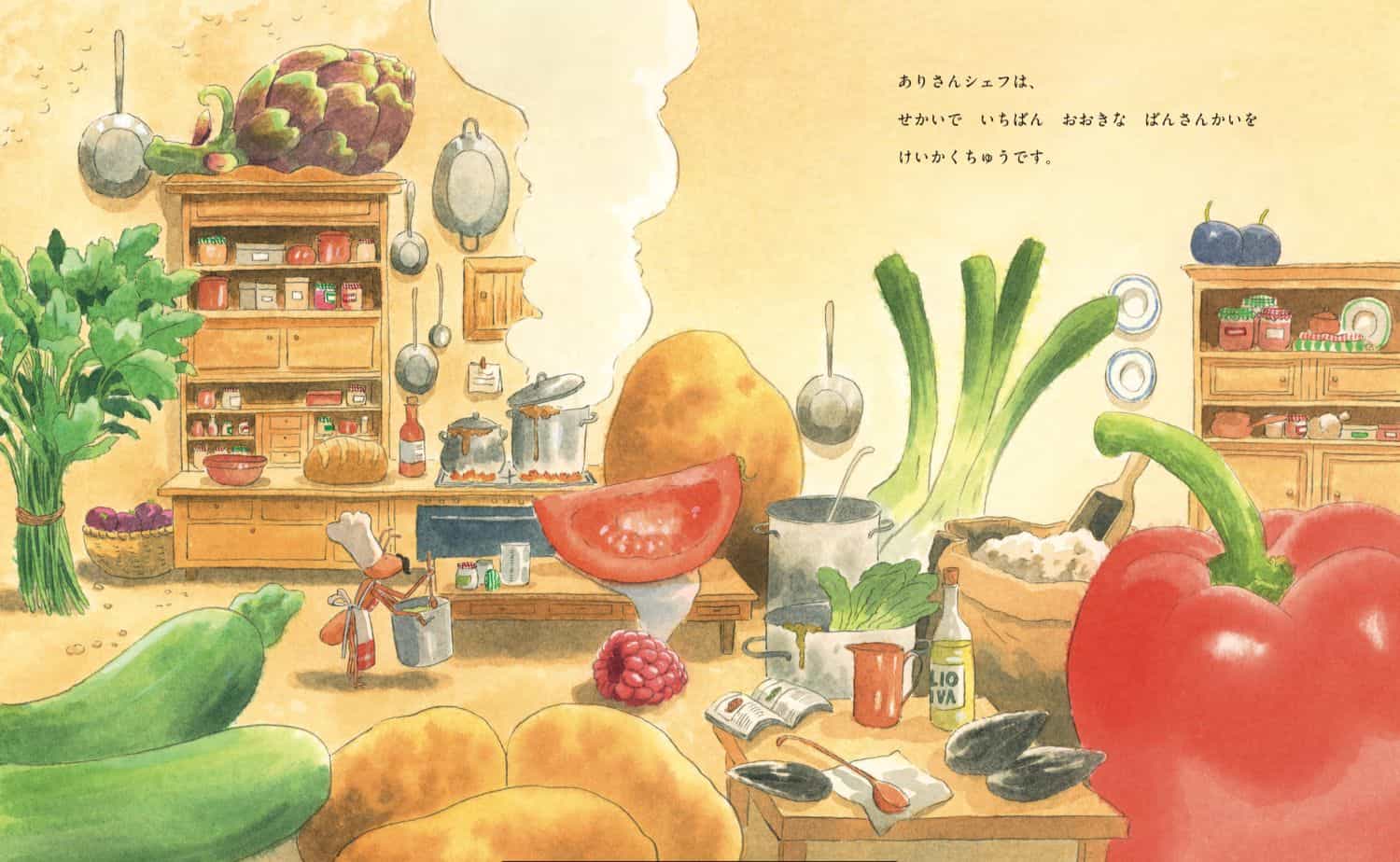 そして、大胆にも『La piu grande cena mai vista(英題:The Biggest Dinner Ever)』という原題タイトルまでを変えて、『ありさんシェフの しょうたいじょう』としました。