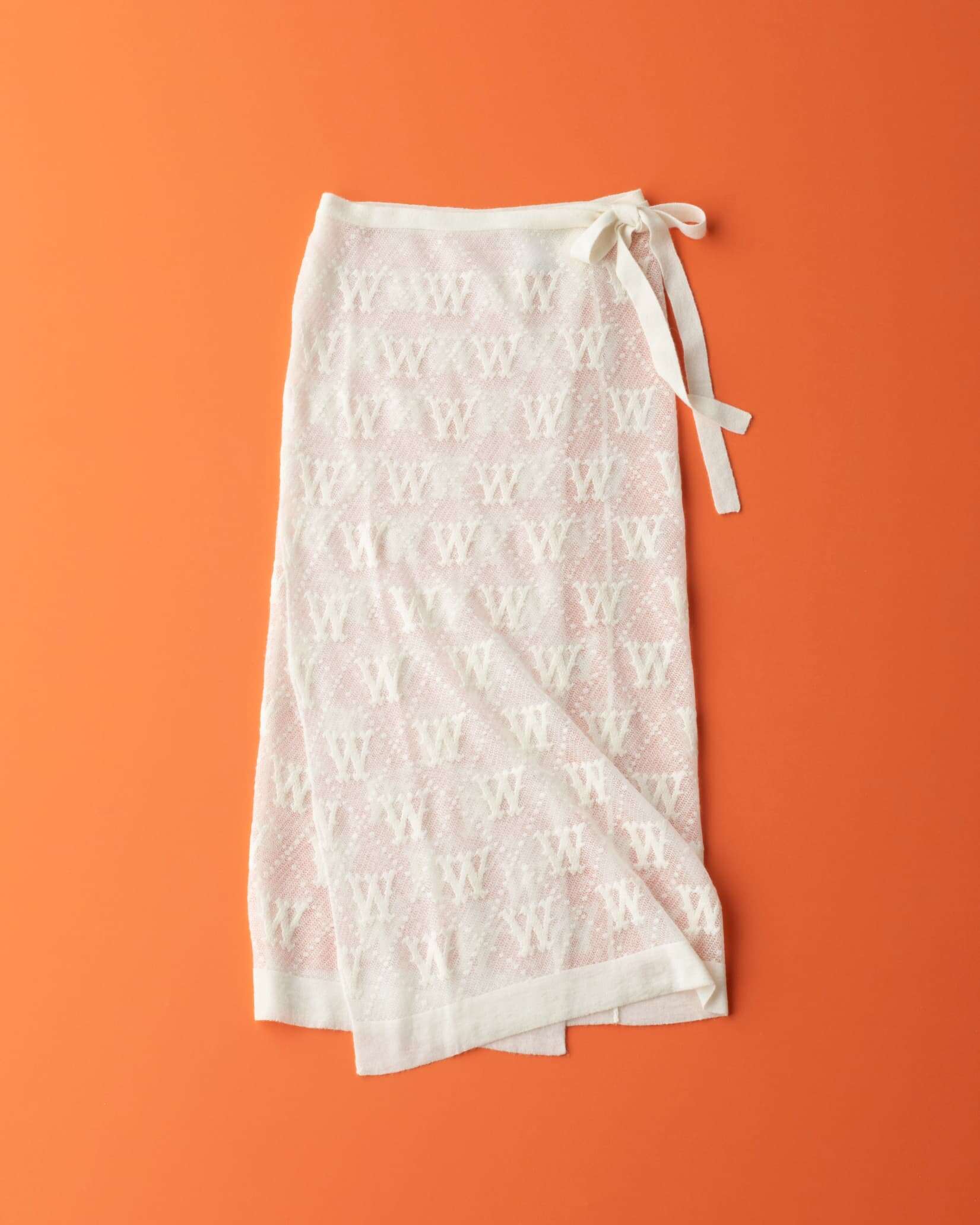 春夏よく見かけたレースのオーバースカート、秋はニット素材が新鮮です。下に穿くものによってキレイめにもカジュアルにも幅広く着回せる万能選手。ペチコート付きで1枚でスカートとしても着られます。