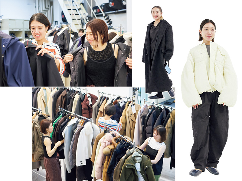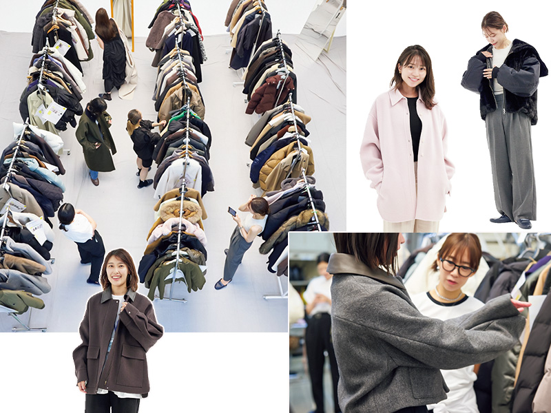 ダウン限定だった去年から規模を拡大して、160着を3日間かけて選別する大試着大会を開催。ズラリと並ぶアウターの数は圧巻でした。実際に着てみたり、人が着ているのを見て「これどう?」「次貸して!」とワイワイ大盛り上がり♪