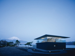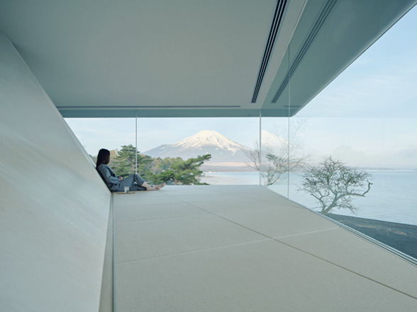 富士山と山中湖を360度一望できるサウナ施設。水着着用で男女混合だからカップルで訪れる人も多い。“笠雲”をモチーフにした独創的な建築デザインがより非日常感を増す。