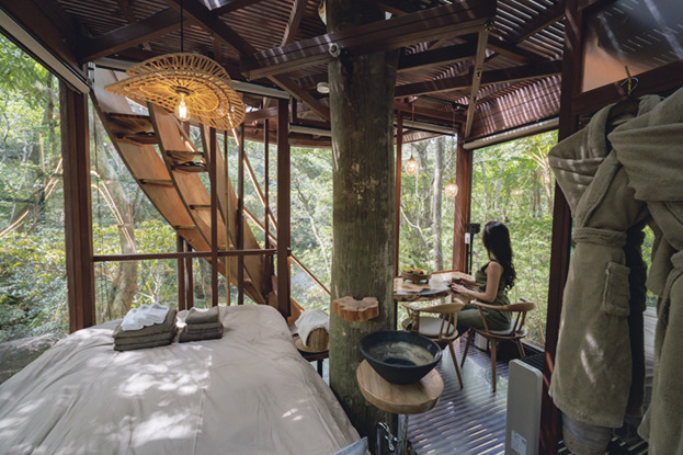 沖縄県名護市のやんばるの森の中に佇む日本唯一のツリーハウスリゾート。自然との共存をテーマにサステナブルな取り組みもしている。都会では味わうことのない生活を体験してみて。