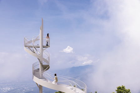 四季を通してさまざまなアクティビティを楽しめるリゾート。なかでも標高1,770mから眺める夕陽と雲海が織りなす幻想的な絶景が見どころ! 新たに併設された空へ登る螺旋階段も楽しんで。