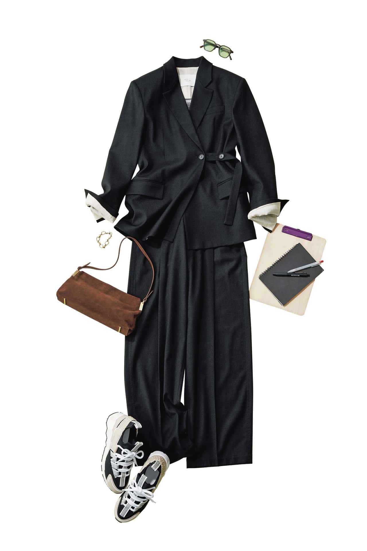 ジャケット¥83,160 パンツ¥43,560(ともにテラ/ティースクエア プレスルーム)タンクトップ¥11,000(オブリオ)バッグ¥75,900(マエストソ/アマン)スニーカー¥124,300(ピエール アルディ/ピエール アルディ 東京)メガネ¥38,500(ブラン/ライト)ブレスレット¥5,830(MU/ロードス)