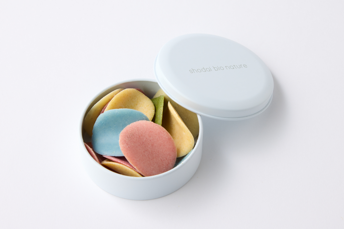 「美意識が高いリュクスメンバーとのランチには、shodai bio natureのペタル ドラジェがぴったり! 花びらのように繊細なチョコが彩り豊かに詰まっていて、とってもキレイでお洒落。身体に優しい素材を使用しているところも話題性があって◎」¥1,080(shodai bio nature)▶詳細はこちら(公式サイト)