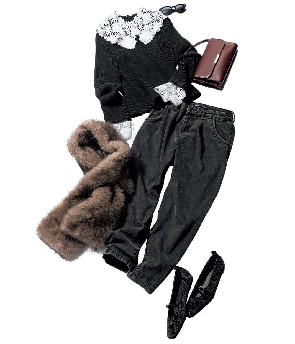 カーディガン¥51,700〈ソブ〉シャツ¥35,200〈ダブルスタンダードクロージング〉(ともにフィルム)パンツ¥15,400(ノーク)ピアス¥27,500リング¥57,200リング¥81,400(すべてアガット)バングル¥33,000(ヴァンドームブティック/ヴァンドームブティック 大丸東京店)ローファー¥27,940(ランバン オン ブルー/モーダ・クレア)ソックスご本人私物