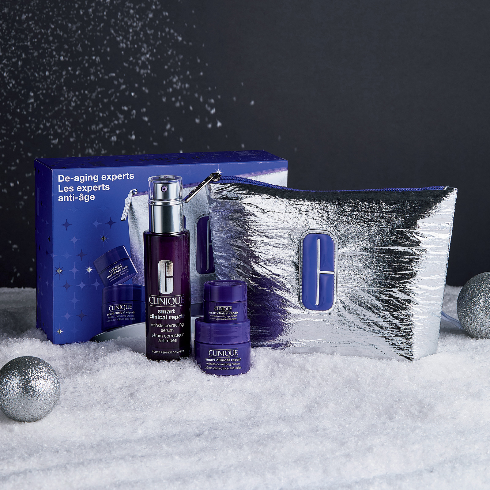 美しく引き締まった弾力美肌をもたらしてくれると人気の「スマートリペア」シリーズ。朝晩使える肌に優しいレチノール誘導体配合のエイジングケア美容液「スマート リペア セラム」現品に、「スマート リペア クリーム」と「スマート リペア アイ クリーム」がセットされたお得なキット。輝きに満ちた肌でホリデーを迎えて。クリニーク スマート リペア セラム 50 セット 26 ¥16,720(クリニーク)