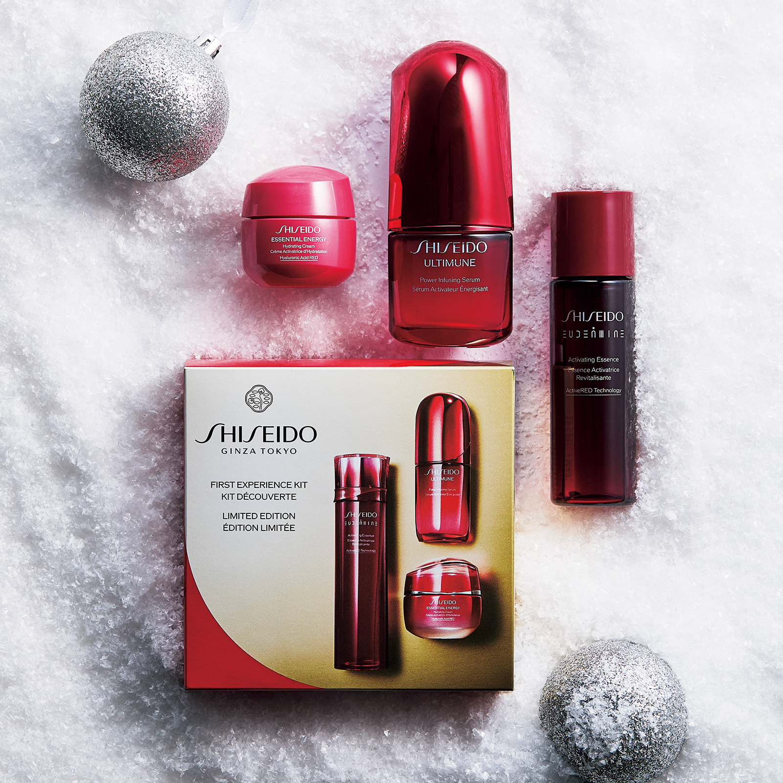 先進の美肌知見をもとに生まれた新生「アルティミューン™️ パワライジング セラム」に、ベスコス総なめの化粧液「オイデルミン エッセンスローション」、REDヒアルロン酸GL配合の「エッセンシャルイネルジャ ハイドレーティング クリーム」の実力派3点セット。うるおい・ハリ・弾力のある透明感あふれる肌に。SHISEIDO ファースト エクスペリエンス キット ¥5,940(SHISEIDO)