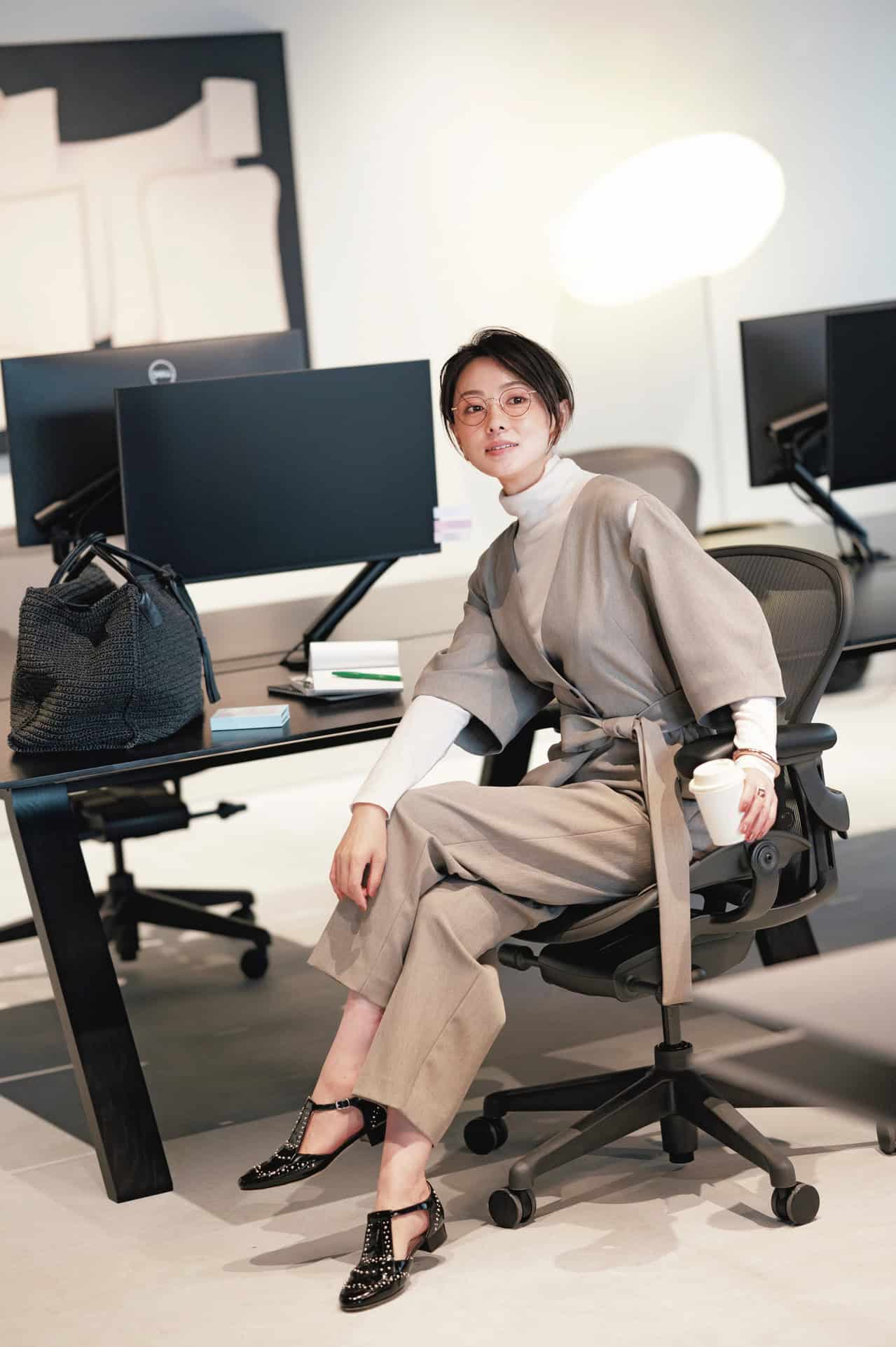 ニット¥83,600(ラスパイユ/ザ エディット ストア)トレンチコート¥79,200(レハ/ユナイテッドアローズ 渋谷スクランブルスクエア店)パンツ¥9,900(Mila Owen/Mila Owen ルミネ新宿2店)バッグ¥64,900(ジャンニ キアリーニ/ジャンニ キアリーニ 銀座店)ブーツ¥26,400(ダイアナ/ダイアナ 銀座本店)サングラス¥49,500(プロポ/プロポデザイン)ピアス¥55,000(リューク)ベルト¥12,100(レフィエ/フラッパーズ)