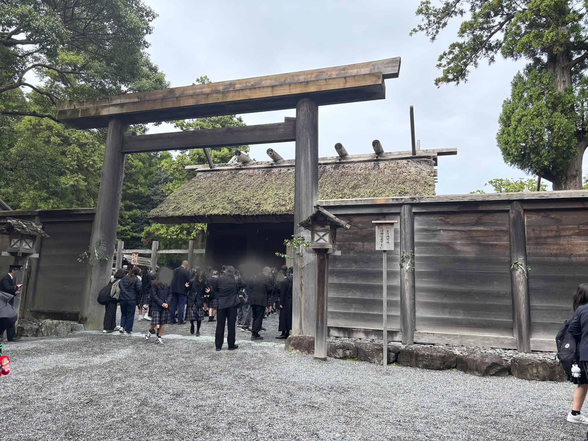 外宮では御正宮の前にある御帳(みとばり)<神聖な場所が直接人の目に触れないようにする白い布>が参拝する時に揺れました。これは神様に歓迎されているサインだとか! しかも顔を上げた瞬間に上から水滴が落ちてきて頭の上にぽつんと2滴も垂れたんです。ちょっと鳥肌ものの体験でしたが、神聖な気持ちのまま外宮を後にすることにしました。