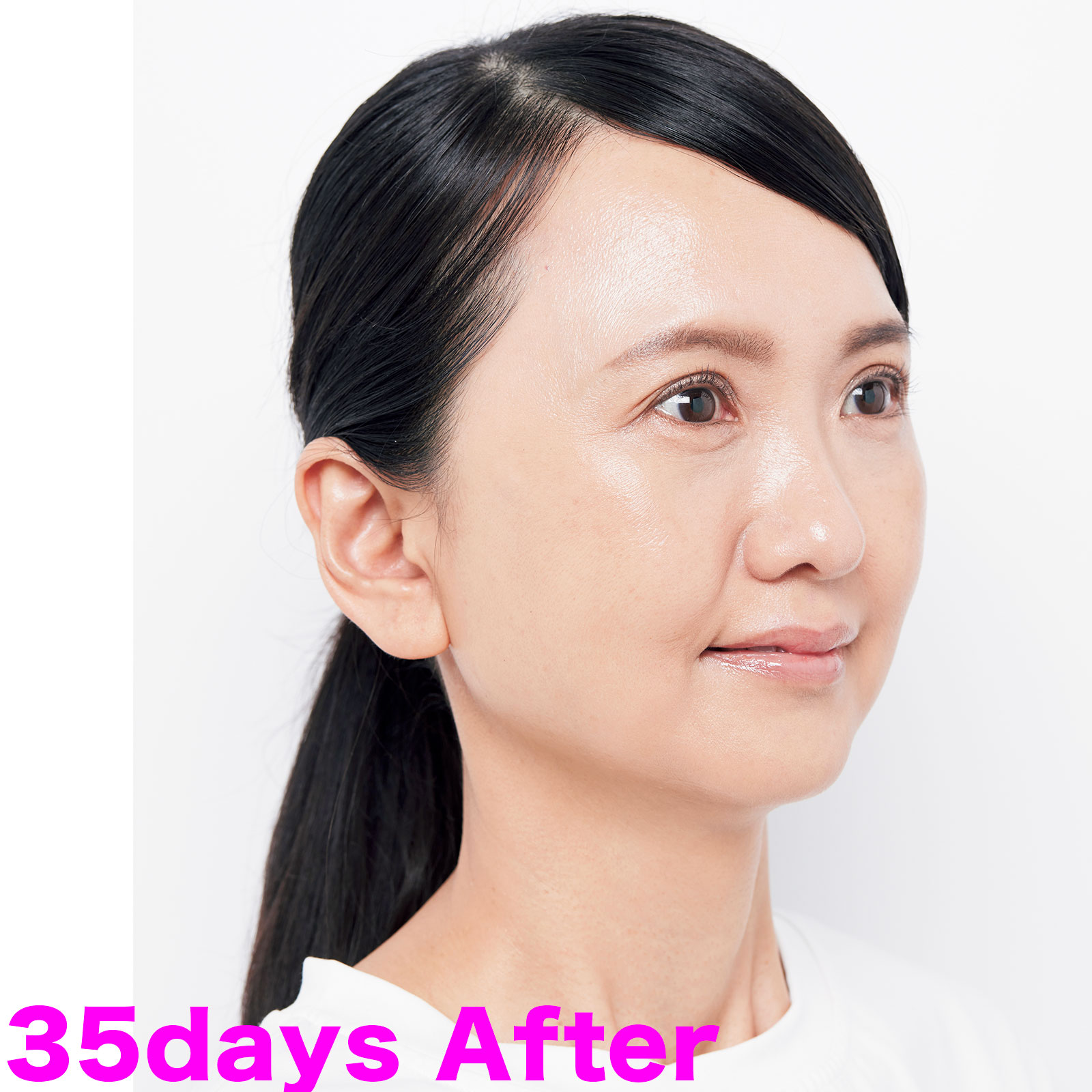 使用して2週間でフェイスラインを中心に驚きの変化。35日で輪郭もマリオネットラインも見違えるほどすっきり。「伸びの良いクリームでメソッドが気持ち良く簡単なのでモチベーションになりました」